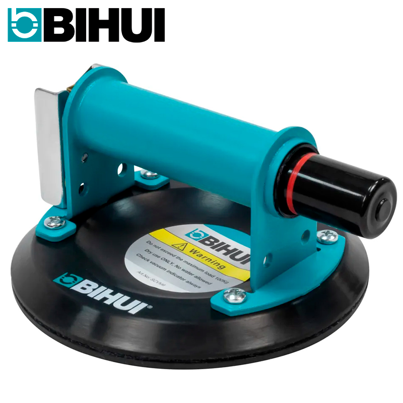Присоска для переноски и укладки гладкой и мелкорефленой плиткой. Удерживает груз до 120 кг в течение нескольких часов. Оснащена вакуумной кнопкой нагнетания давления с индикаторной линией для визуального контроля снижения давления. Поставляется в удобном кейсе. Диаметр присоски — 203 мм.
