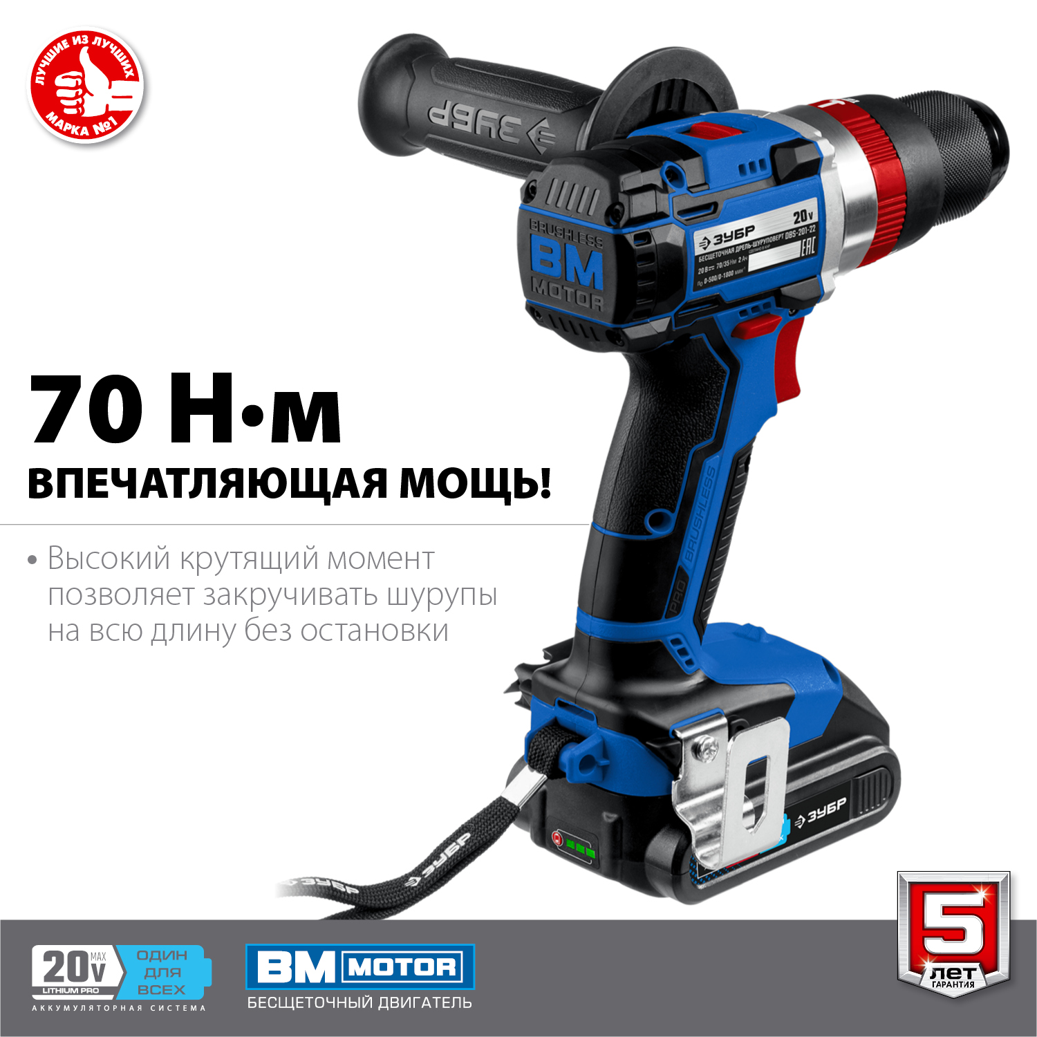 Высокотехнологичный шуруповерт профессионального уровня с передовым BRUSHLESS двигателем. Высокий крутящий момент 70 Нм, ударная функция, надежность конструкции и отличная эргономика позволяют выполнять практически любую работу — сверление дерева сверлом Левиса, сверление металла ступенчатым сверлом, сверление кирпича и легкого бетона, заворачивание крепежа диаметром до 12 мм, перемешивание ЛКМ и прочее без усилий с Вашей стороны и перегрузки инструмента. Комплектация с двумя батареями и быстрозарядным устройством позволяет начать работу сразу после покупки