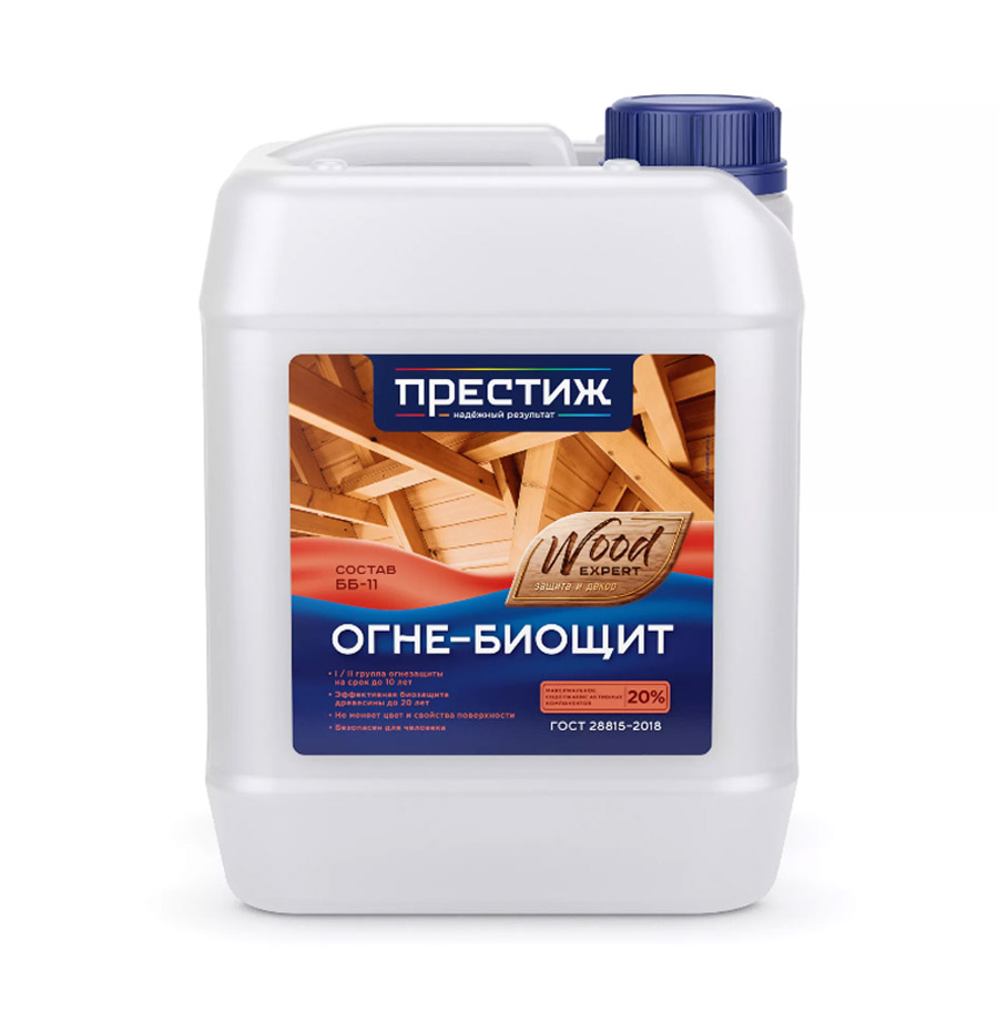 Обработка неокрашенных деревянных поверхностей, эксплуатируемых внутри помещения и на открытом воздухе (под навесом) в условиях периодически возникающего гигроскопического и конденсационного увлажнения, изолированных от воздействия атмосферных осадков и почвенной влаги. Переводит древесину в трудногорючий, трудновоспламеняемый материал в соответствии с I и II группой огнезащитной эффективности по ГОСТ Р 53292-2009 (с учетом старения). Глубоко проникает. Не препятствует последующей обработке основания. Безопасен для человека. Срок биозащитной эффективности – до 20 лет; огнезащитной – до 10 лет. Основания, подверженные постоянному воздействию влаги или атмосферных осадков, защитить финишным покрытием.