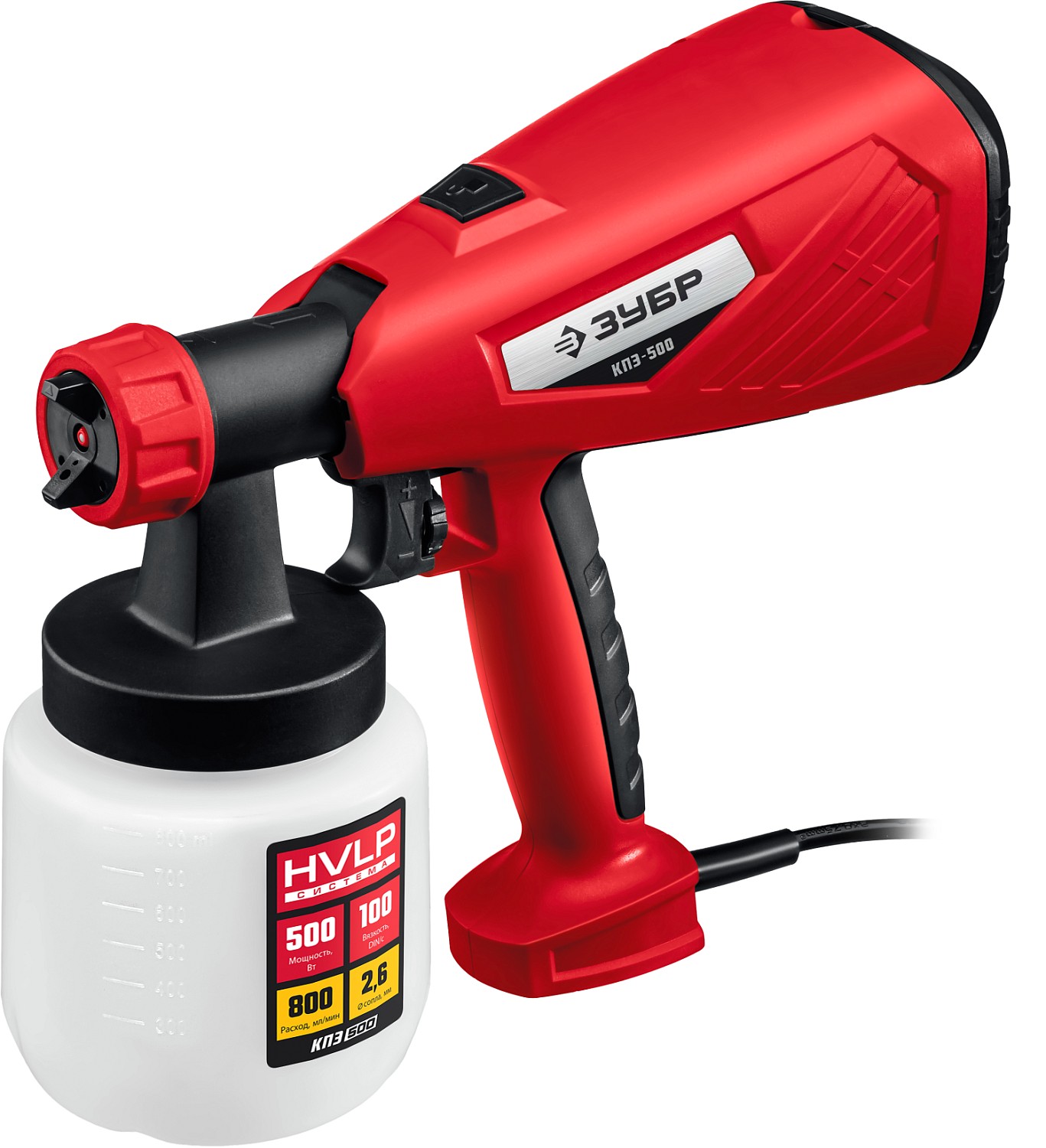 Расходная емкость объемом 800 мл позволяет длительно работать на одной заправке и не нагружает руки оператора излишним весом