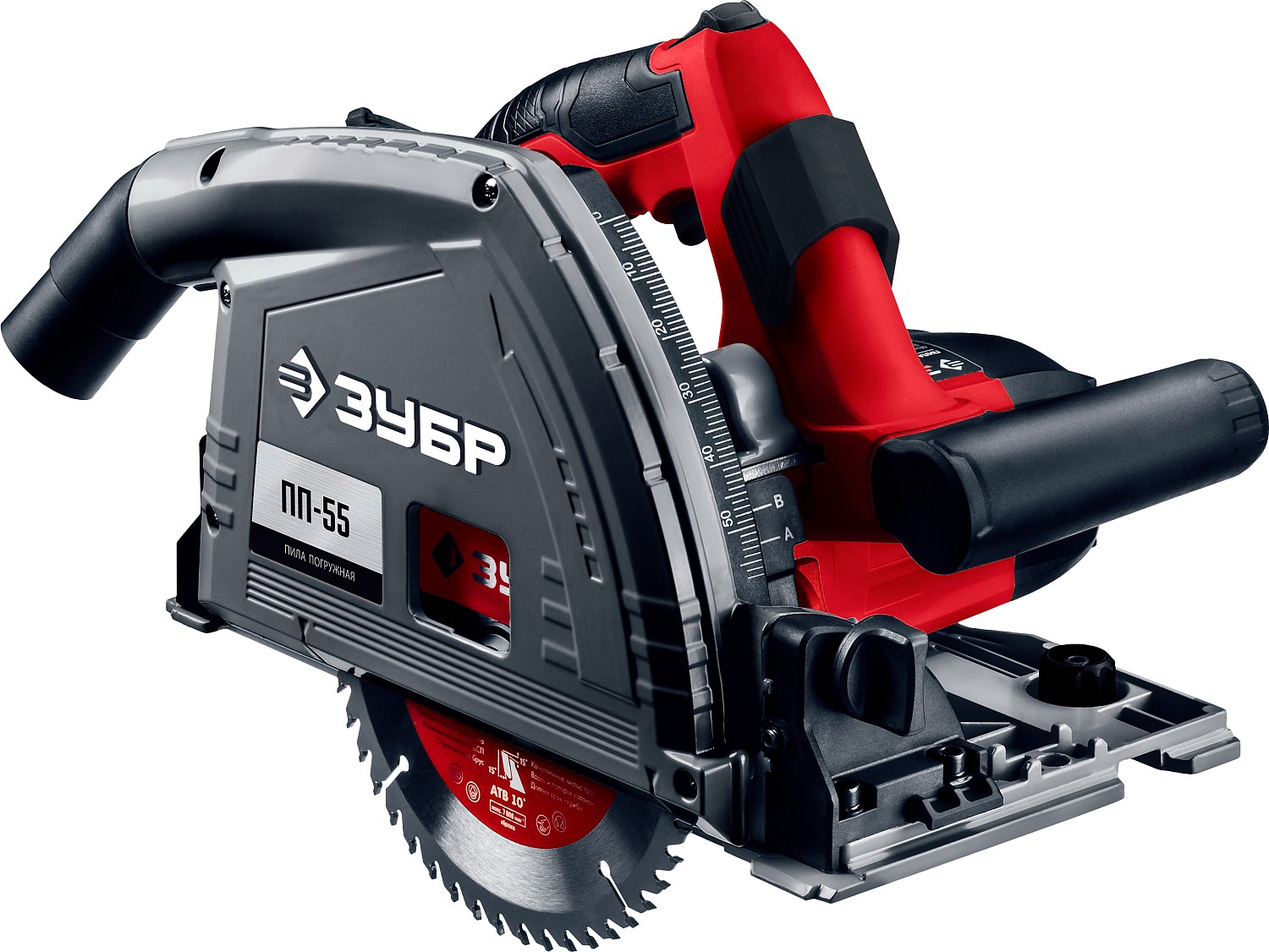 Шкала глубины пиления имеет отметки уровня при работе с направляющей шиной или без нее